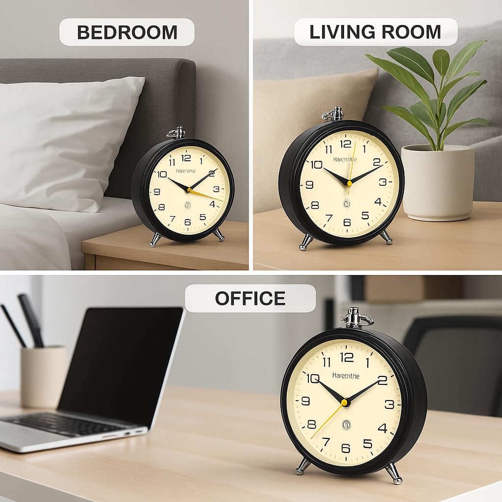 AERYS Honeytime Metal Alarm Clock Wall Clock Table Clock for Study Analog Silent Vintage Clock,Alarm Clock for Heavy Sleepers Home Office Bedroom-Black (Battery Not Included)-13 Cm Black