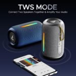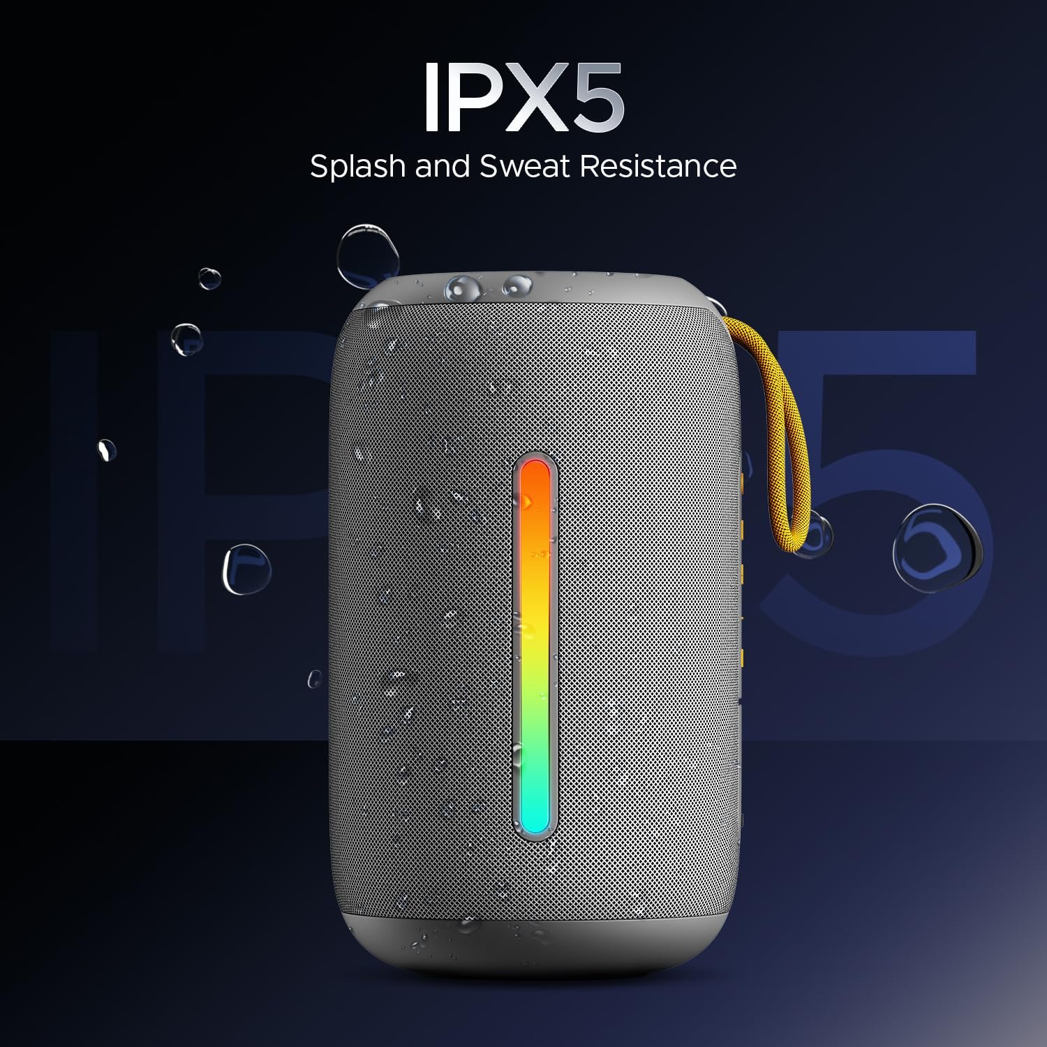 - IPX5 Resistance: Take your speaker to the gym, beach vacays, or the poolside without worrying as its IPX5 sweat and splash resistance ensures round-the-clock entertainment.