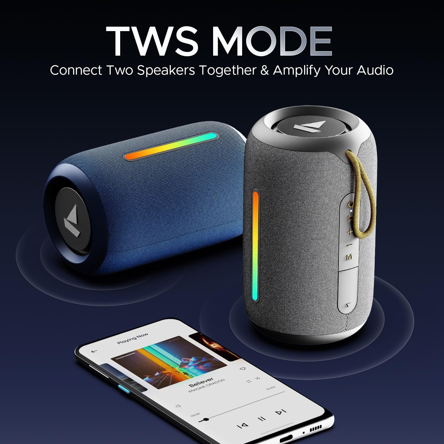 boAt Stone 352 Pro/Stone 358 Pro w/ 14W Signature Sound, Up to 12 Hours Playback, RGB LEDs, TWS Feature, Built-in Mic, BTv5.3, Free Music Streaming on JioSaavn Bluetooth Speaker (Groovy Grey)