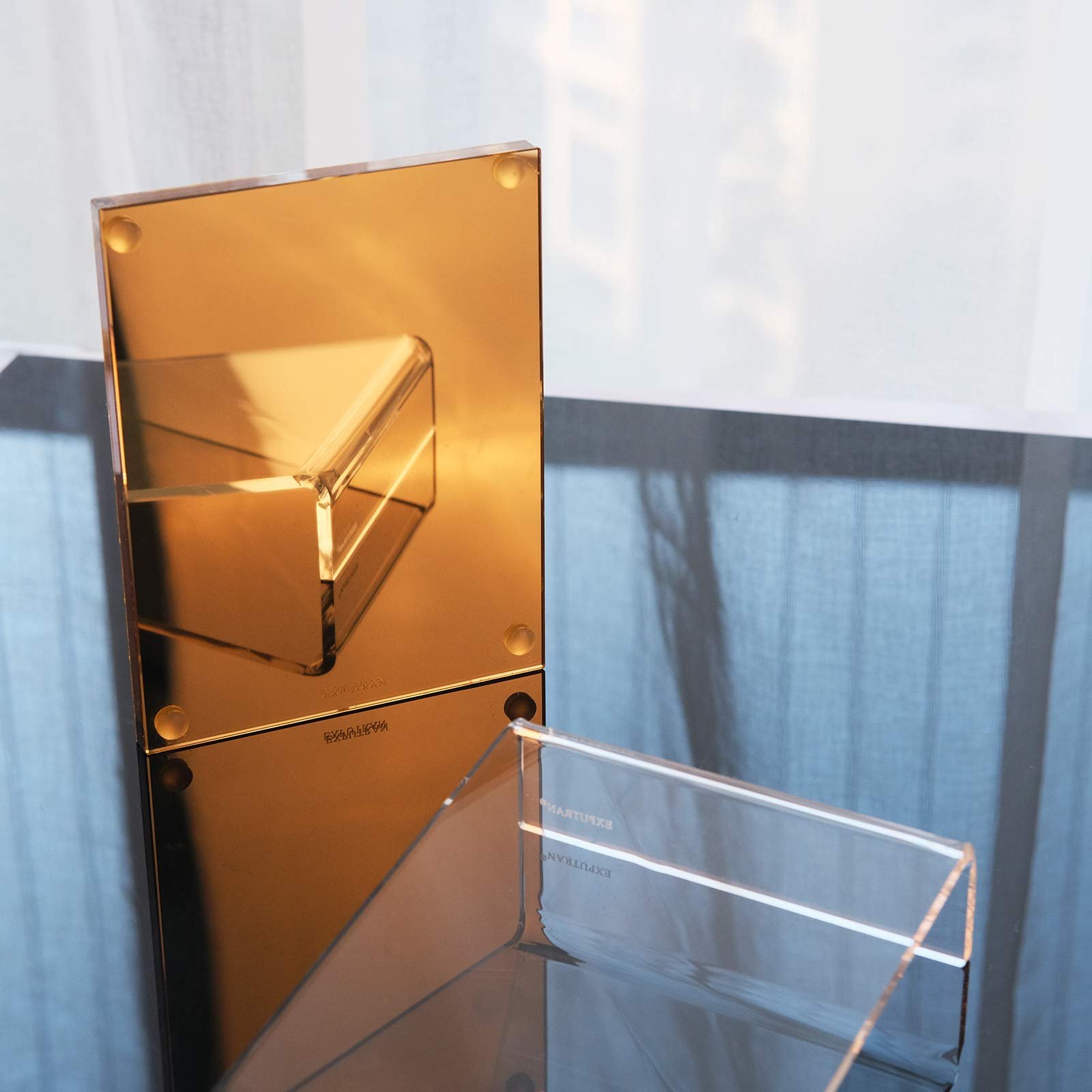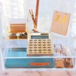 - Unique design; Clear acrylic with gold modern design style will make a unique and stylish addition to your workplace. EXPUTRAN designs full kits of gold and silver-toned desk accessories to suit different themes for your office and home