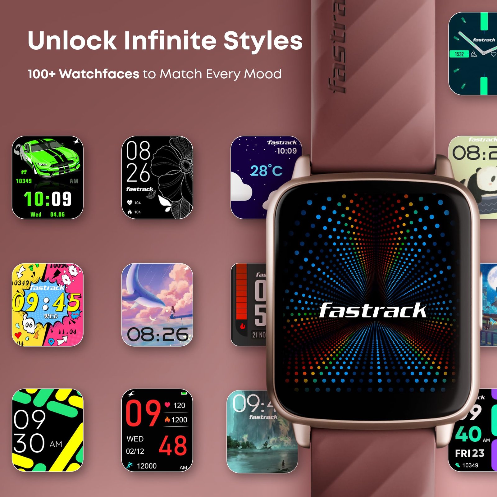 - Designed for the bold generation, this Fastrack smart watch for women and men features a 1.83″ display, smooth silicone strap, and a playful yet rugged look perfect for campus, travel, and everyday vibes.