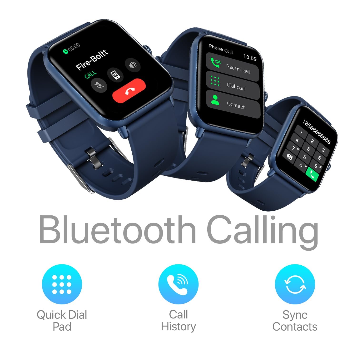 • BLUETOOTH CALLING WITH DIAL PAD & CONTACT SYNC: Smart watch for men make and receive calls directly from your wrist with built-in Bluetooth calling. Access call history, dial pad, and smart watch for women also sync contacts for total on-the-go convenience.