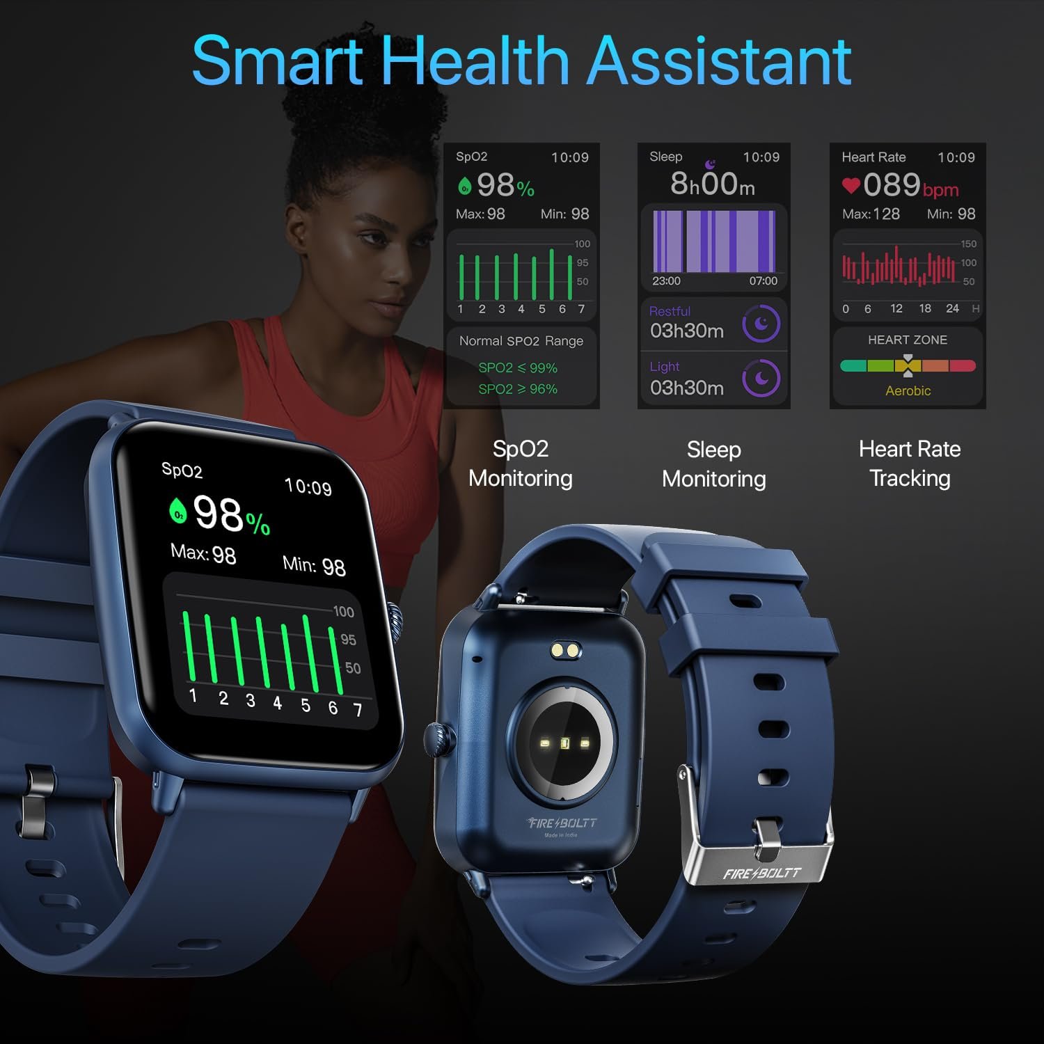 • REAL-TIME HEALTH MONITORING 24/7 – Stay on top of your wellness with advanced SpO2 tracking, dynamic heart rate monitoring, and in-depth sleep analysis with step tracker watch for women, powered by Fire-Boltt’s Health Suite for accurate insights.
