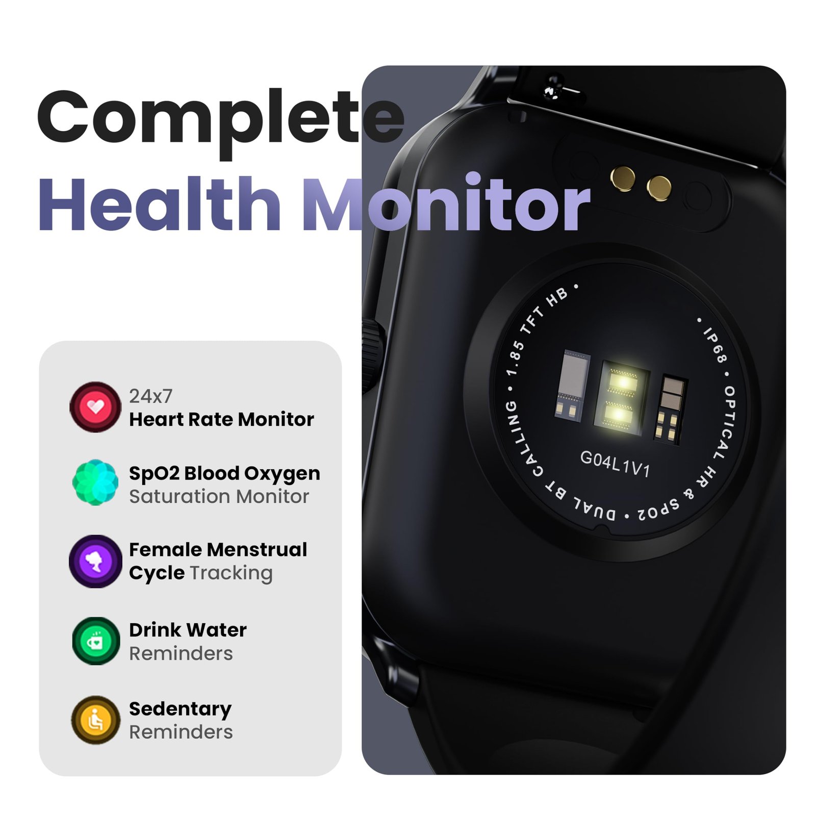 • ✅Comprehensive Health Monitoring: The Drift+ smartwatch offers complete health insights, featuring 24/7 heart rate monitoring, SpO2 blood oxygen tracking, blood pressure monitoring, and female menstrual cycle tracking.