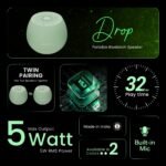 HAMMER Drop 5W Bluetooth Wireless Speaker with Twin Pairing, 1200 mAh Battery, 100H Standby Time, TWS Function, TF Card, USB Slot, Auto-Pairing, in-Built Mic, Type-C Charging, 52mm Driver (Green)