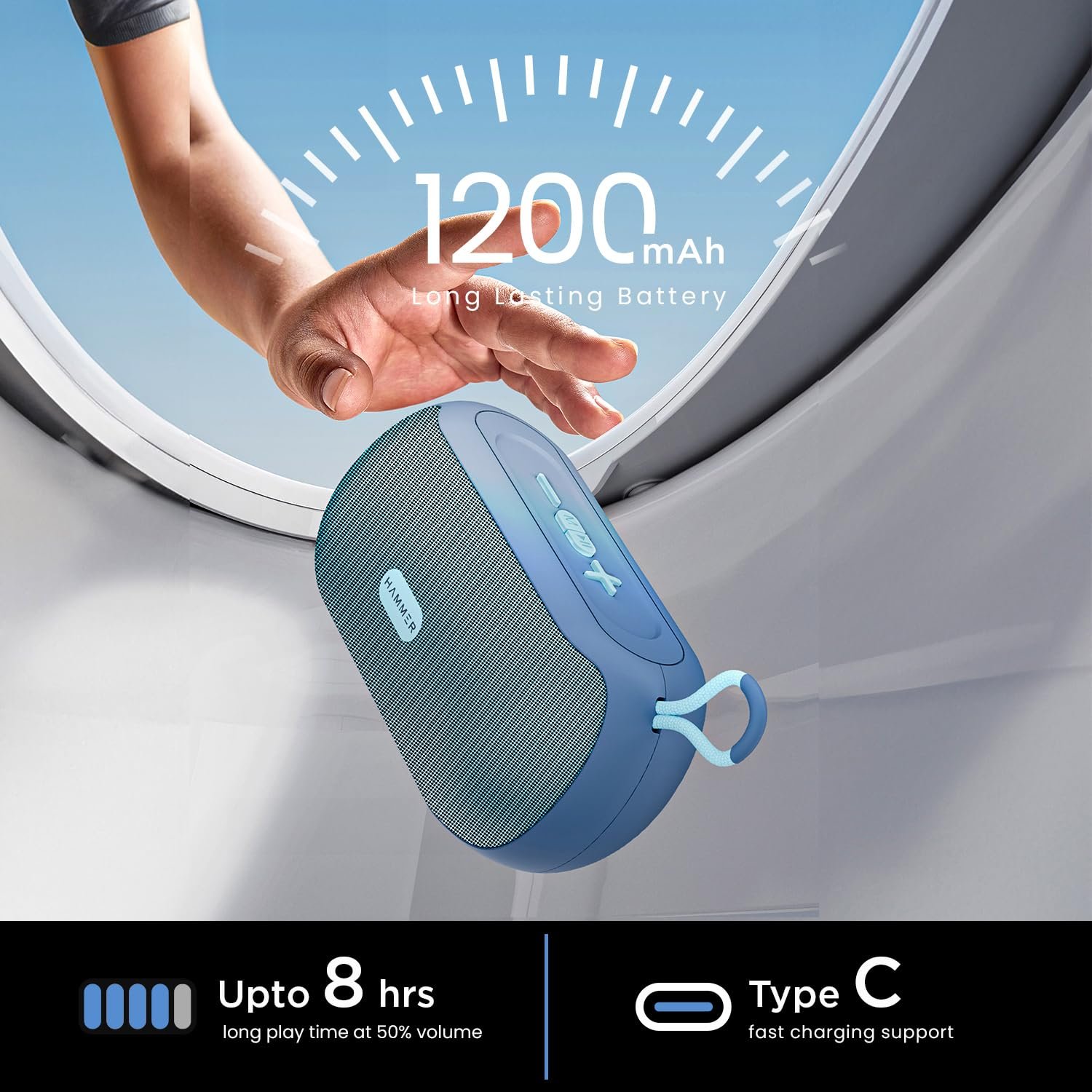 HAMMER Wave 10W Bluetooth Speaker Up to 8 Hours Playtime, TWS Function, Made in India, Built-in Mic, BTv5.4, USB Port, Type-C Interface Wireless Bluetooth Speaker with Hanging Loop (Blue)