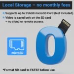 • No Wi-Fi Needed – SD Card Recording Only – No app, no internet, no monthly fees. All videos are saved securely to an SD card (SD card not included in the package).