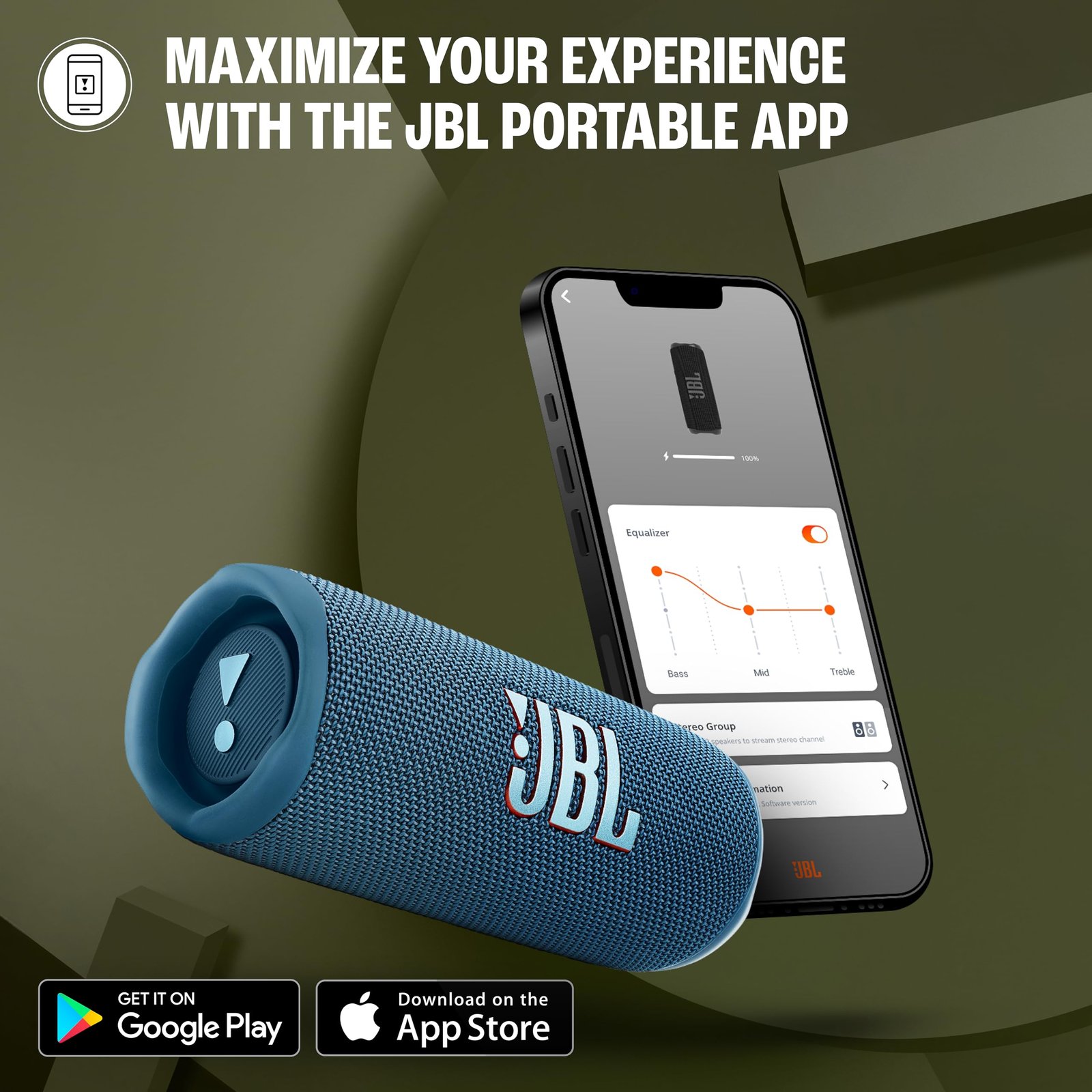 • JBL PORTABLE APP: Amplify your audio or tweak your bass using JBL portable app. Get updates & support straight from your phone.
