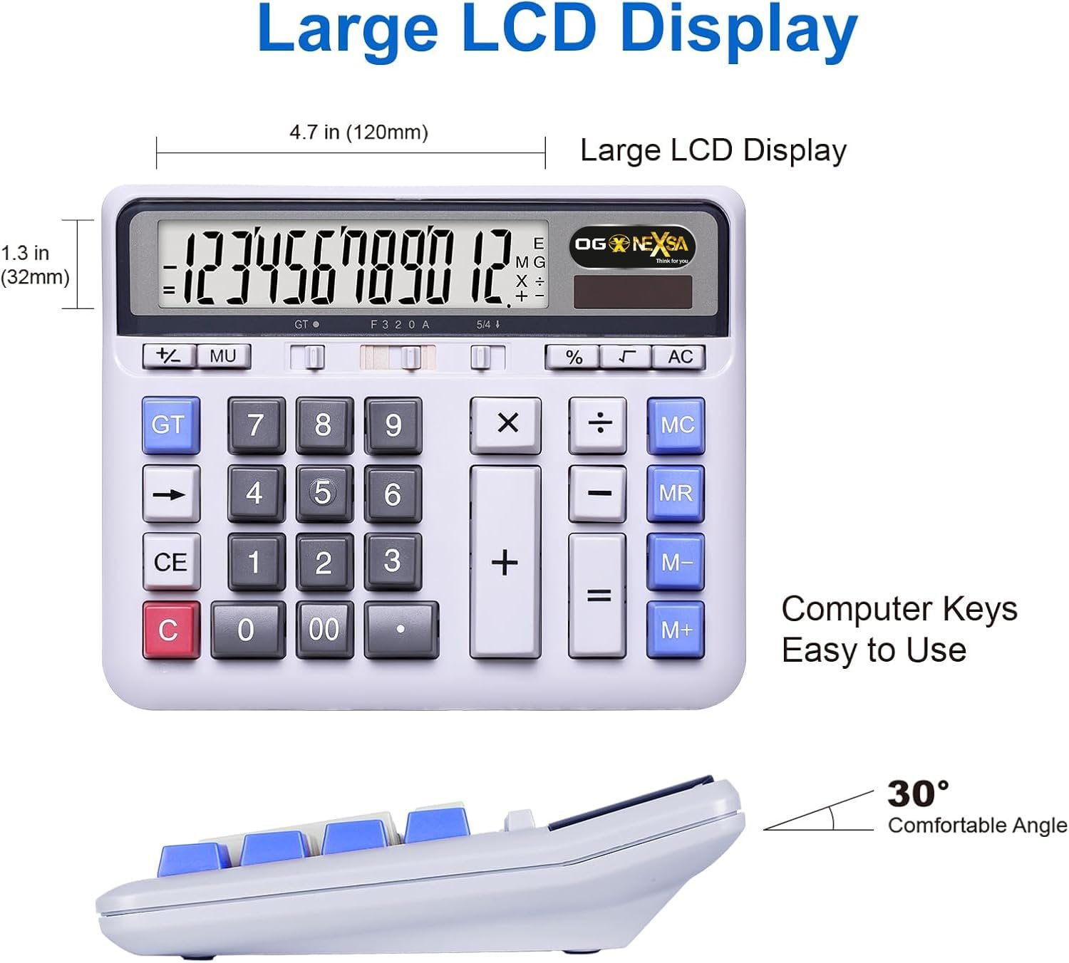 • 📺 Large & Clear 12-Digit LCD Display – The 30° angled screen offers high visibility with bold digits, making it easy to read in any lighting condition—ideal for office, school, and business use.
