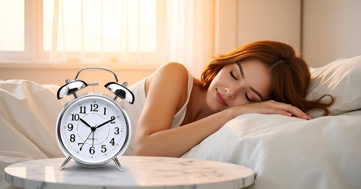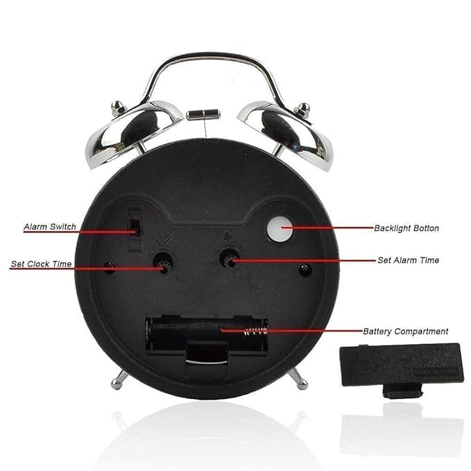 Odzeni Classic Twin Bell Analog Alarm Clock – Retro Metal Table Clock with Night Light & Loud Ringer – Ideal for Bedroom, Office, or Study (Silver)