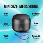 pTron Newly Launched Fusion Hook v2 6W Bluetooth Speaker with 8 Hrs Playtime, 2.04″ Neo Driver for Pristine Sound, Mini Size Portable Speaker, BTv5.1 Connectivity, TWS Feature & Type C Charging(Black)
