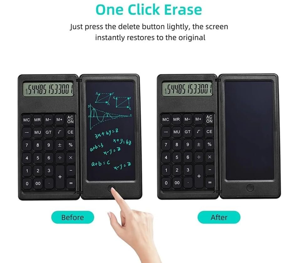 - COMBO DESIGN Integrates digital calculator and writing tablet in one foldable body supporting calculations and handwritten notes together for faster daily task handling
