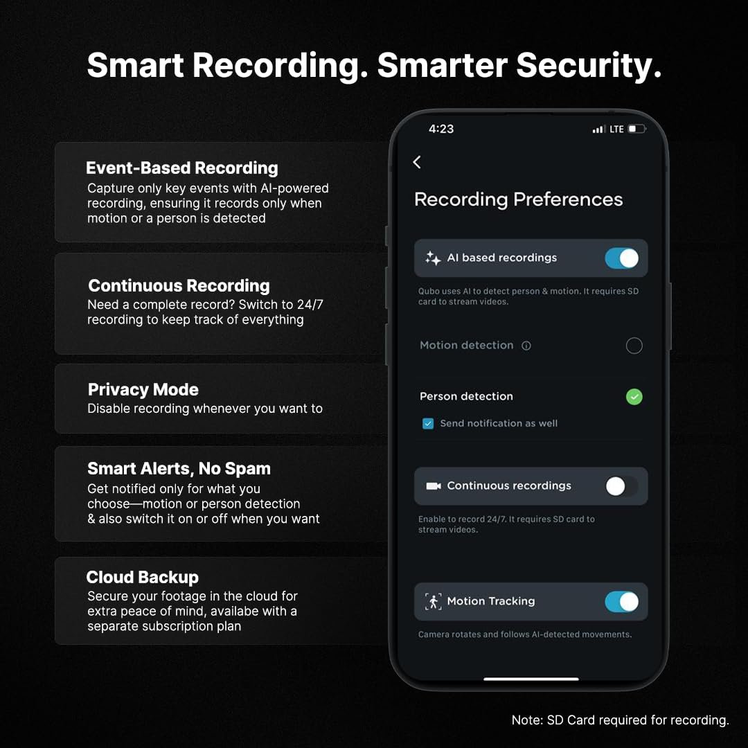 - 【AI-Powered Person Detection + Intruder Alarm】 Advanced AI detects motion and distinguishes humans to minimize false alerts. Instant smart notifications are sent to your Qubo App, and the system can trigger a loud intruder alarm.