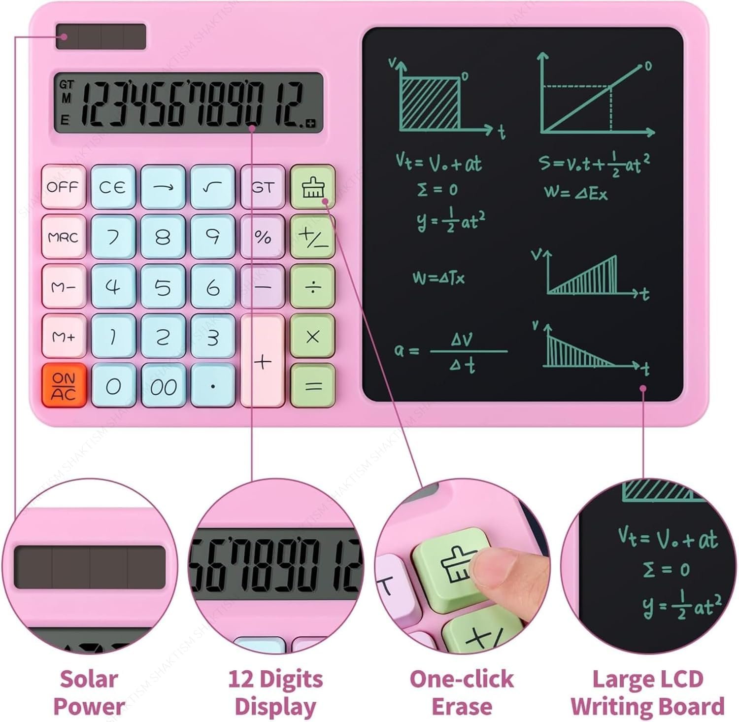 SHOPOBOX 12-Digit Solar Calculator Large LCD Display with LCD Writing,Drawing Board Scientific Calculator Standard Function Calculator – Random Colour