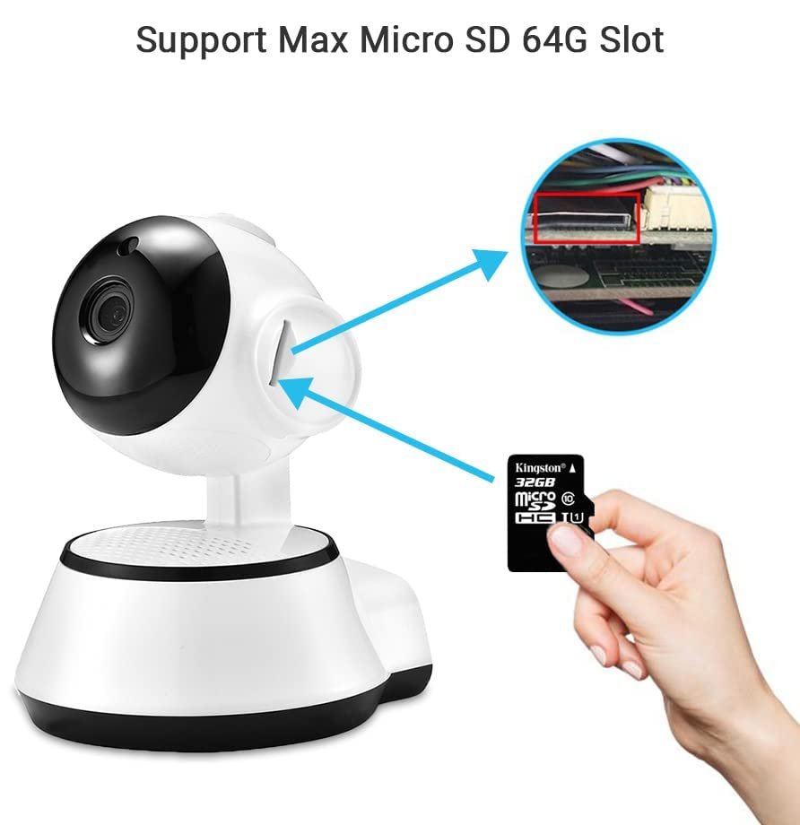 Details: Micro SD Card: Support micro SD card storage up to 64G (micro SD card Not included) EASY PLUG-N-PLAY: Install free Mobile App. from Play Store or iTunes store. Pair the camera and App over same WIFI network. That’s all. Place on table or wall mount as need.