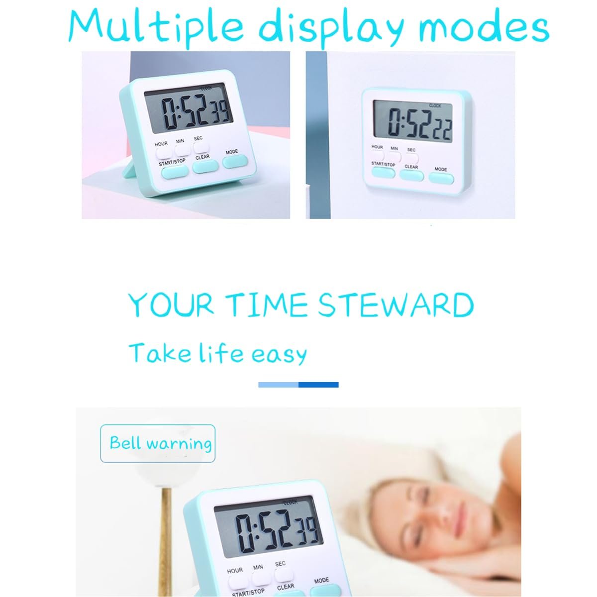 - Easy to Read Clear Digits,Large Digital Timer,LCD display screen cooking timer clock,you can easily read with it’s big, bold digits.